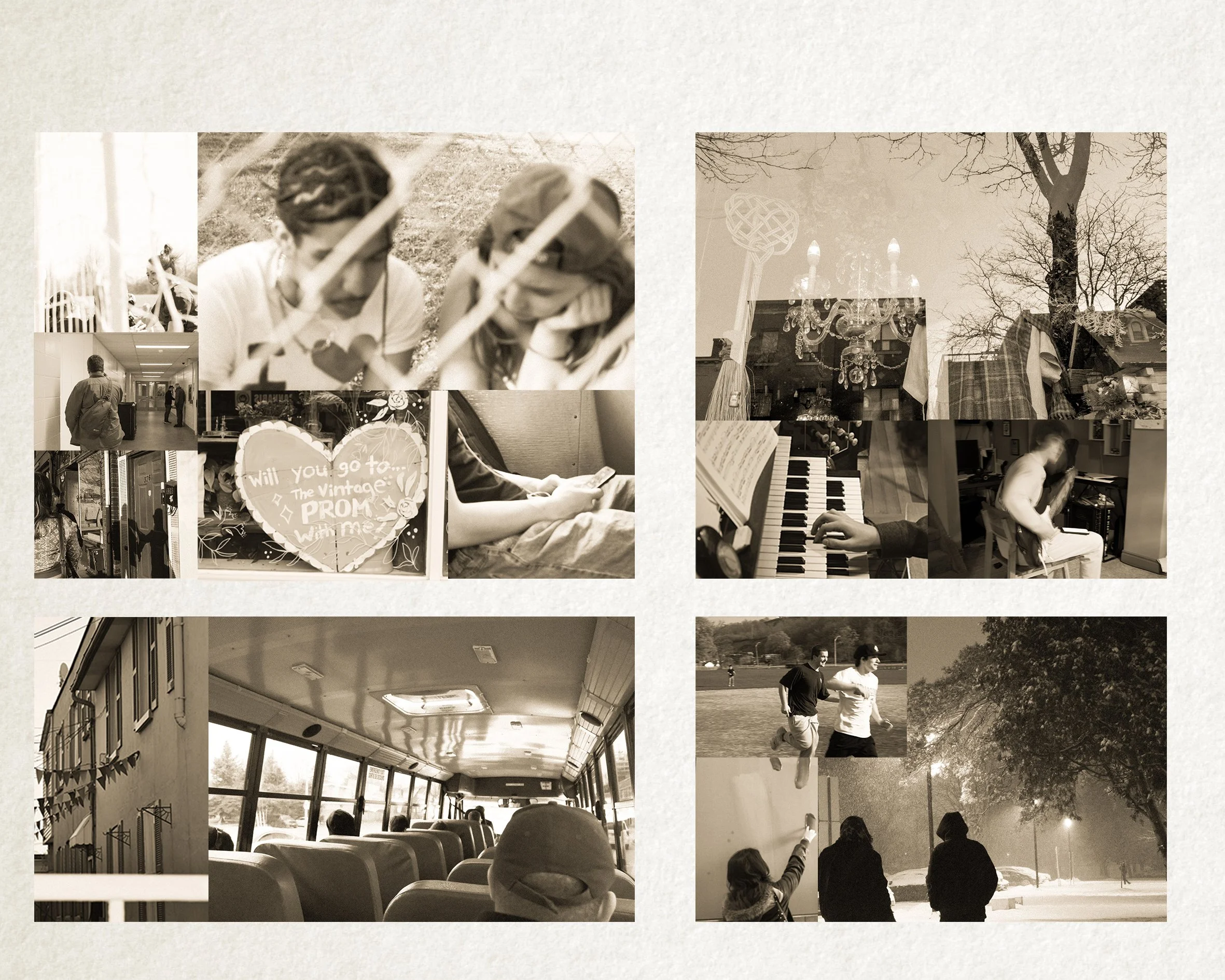 As an artist, I tend to create artwork that has a piece of me or something meaningful to me incorporated into it. My loved ones and friends are most important; I cherish them deeply in my heart. In my photography, I find myself leaning towards candid photos of moments and people. My goal is to evoke emotion and capture memories as best as I can. My vision for this project was to show how it feels to be inside that third-person view looking on the outside of life. I was inspired by the word “SONDER:” the realization that everyone is living their own different lives. I was going for the vibe of Joseph Alber’s photo collages and used my very own pictures.