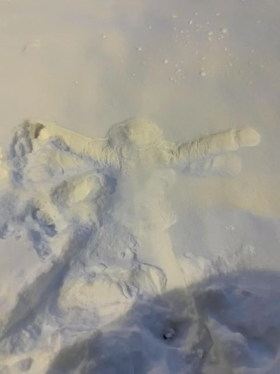 This photo, DEC25, shows a snow angel—simple, playful, and fleeting. It captures a moment where the inside meets the outside: someone’s inner joy, imagination, and energy pressed into the quiet, cold snow. The imprint is a gentle reminder of how we leave little pieces of ourselves in the world without even realizing it. It’s about being present, feeling free, and connecting with nature in a way that’s both personal and shared. The snow will melt or get covered, but for a moment, something real was there. This image is about that in-between space—where what’s inside us meets the outside world, and even if it doesn’t last, it still matters. It’s a soft, temporary echo of joy, captured before it fades.