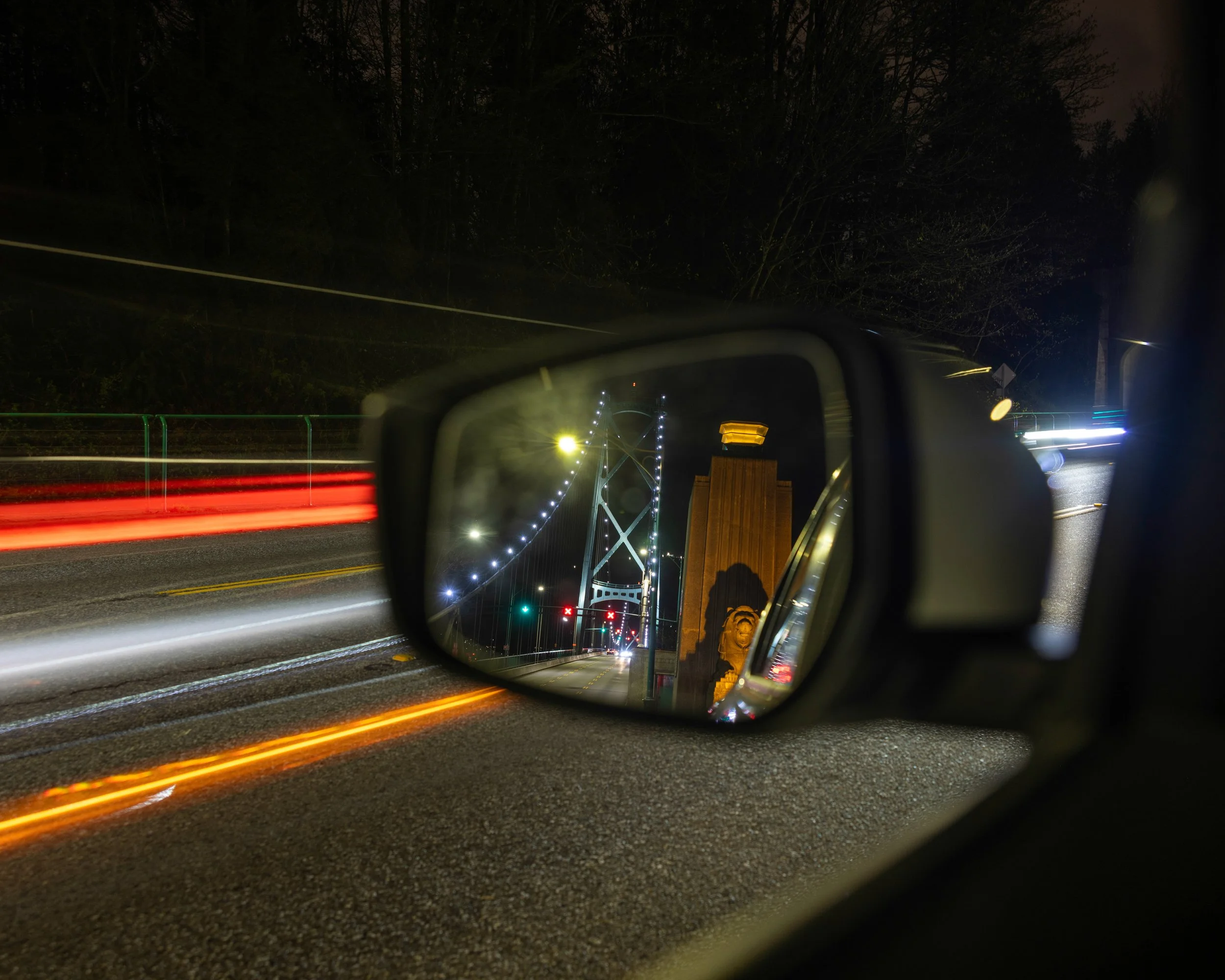 I am a photographer interested in capturing Vancouver through a unique lens that is different and eye-catching. I enjoy taking long exposure photos that capture the lights of cars. I captured this photo because of my passion for cars and history. My inspiration comes from my childhood, mixing it with the present Vancouver and making Vancouver abstract. I chose to take the photo inside the car which captures the outside which is the Lions Gate Bridge. I used a car mirror to experiment with the theme Inside Outside, capturing the movement of cars while keeping the car mirror still and capturing the Lions Gate Bridge. I want my viewers to experience Vancouver in a way that is unique and leaves them thinking about Vancouver’s beauty.